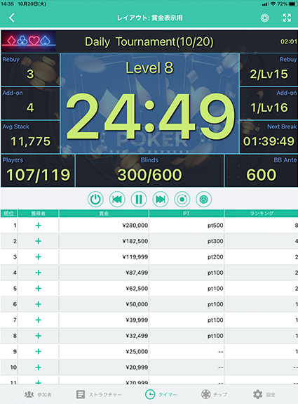 Carry out tournaments, edit and create blind structure and leaderboard, repeat events, publish results, etc.